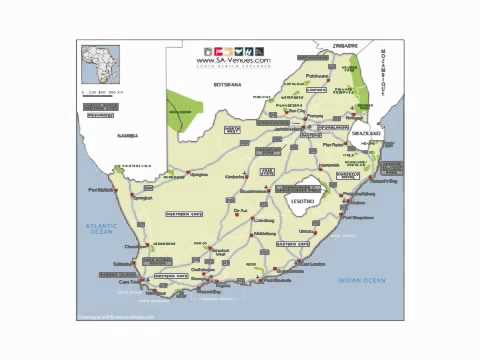 A very short clip showing where the major cities and towns are situated in South Africa.